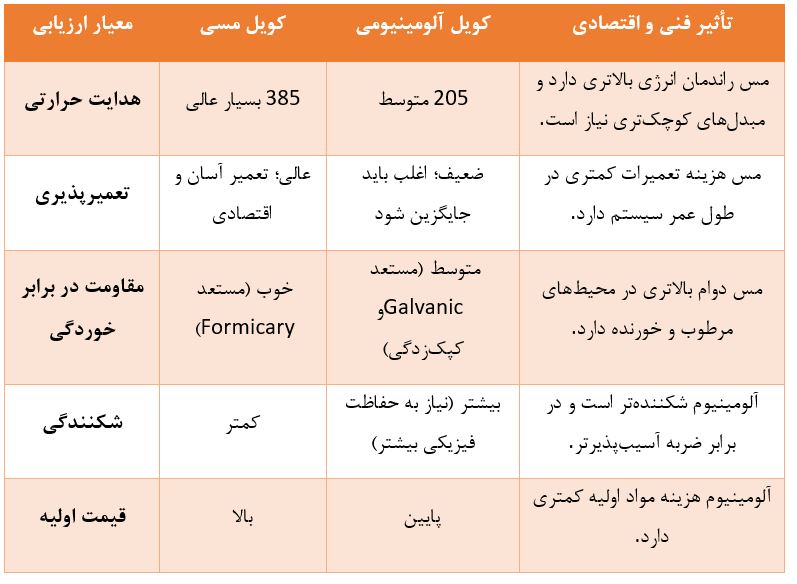 در سالهای اخیر، به دلیل افزایش روزافزون قیمت مس، تولیدکنندگان به سمت استفاده از آلومینیوم در مبدلهای حرارتی گرایش پیدا کردهاند. با این حال، مقایسه تخصصی نشان میدهد که مزایای عملکردی مس اغلب این تفاوت قیمت را توجیه میکند.