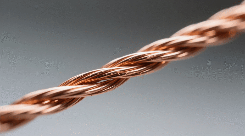 1. نازک‌کاری (Wire Drawing): مفتول‌های مسی خام (معمولاً با قطر ۸ میلی‌متر) وارد دستگاه‌های کشش می‌شوند تا با عبور از قالب‌های کوچک‌تر، به رشته‌های نازک با قطر نهایی مورد نیاز (مانند ۱.۳۸ میلی‌متر) تبدیل شوند.