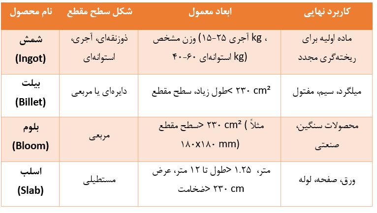 تفاوت شمش با محصولات نیمهساخته دیگر (بیلت، بلوم، اسلب)