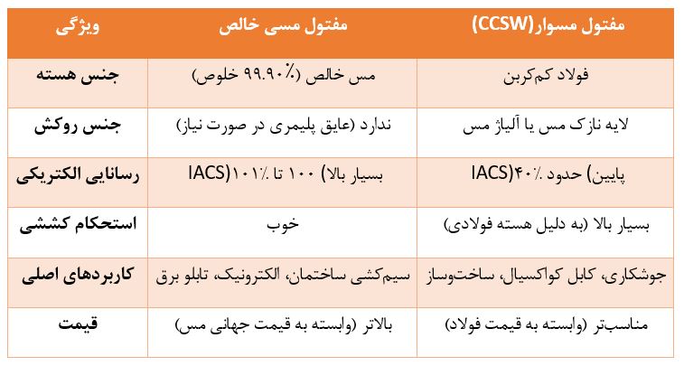 جدول مقایسه جامع: مفتول مسی خالص در برابر مفتول مسوار